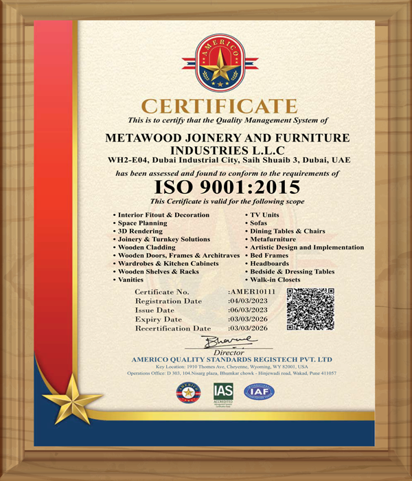 Metawood Joinery and Furniture Industries LLC (metawood), are a leading Joinery ,interior fit out , FF&E integrated solution provider and furniture manufacturer